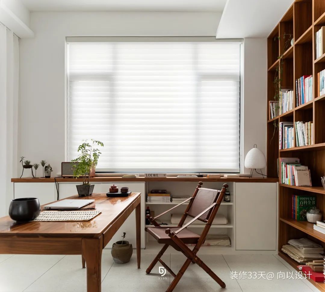 ▲ 闲暇时主人在这里阅读、练字、画画,窗户下方的一排矮柜也提供了很大的收纳容量,同时矮柜台面上也可以置物