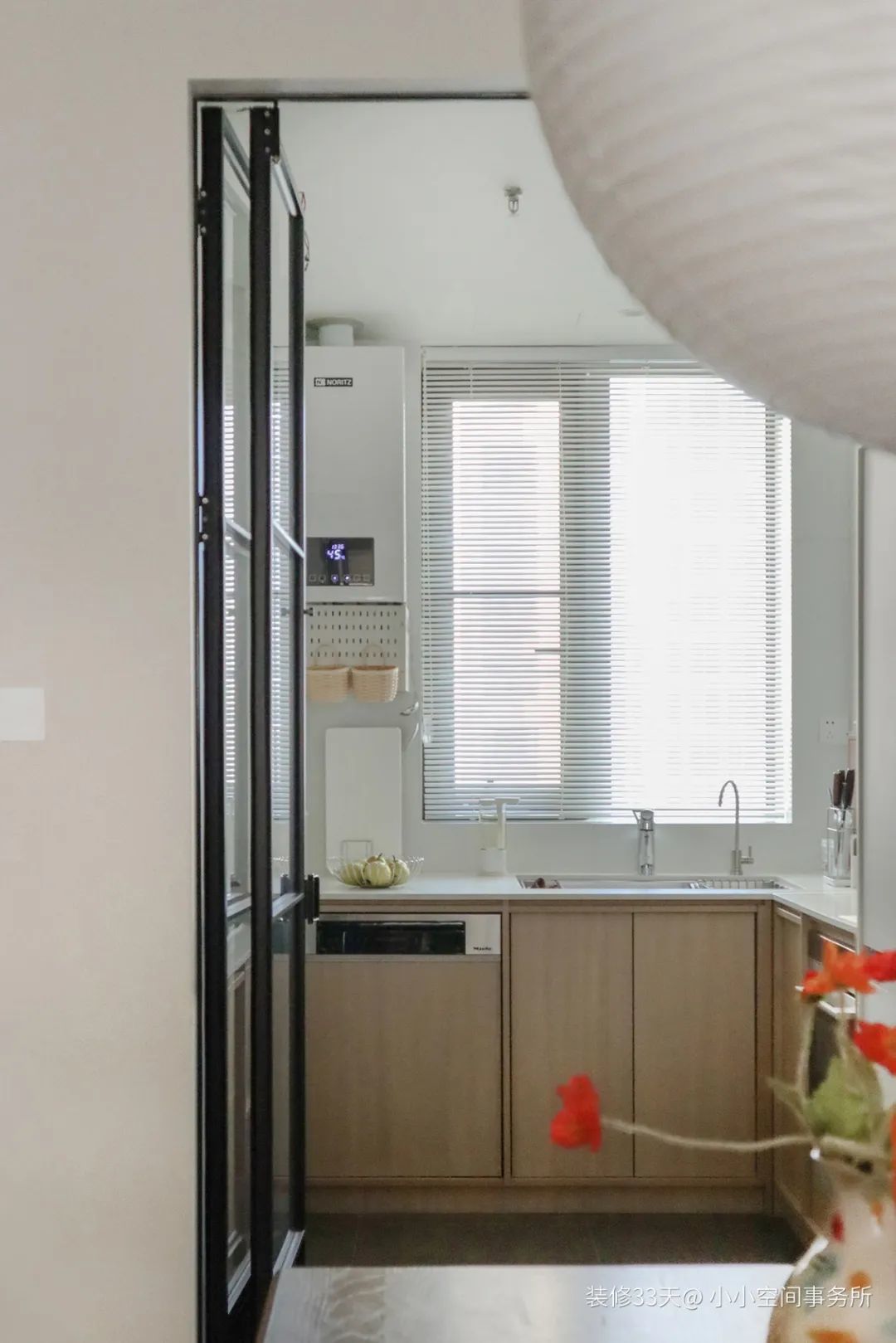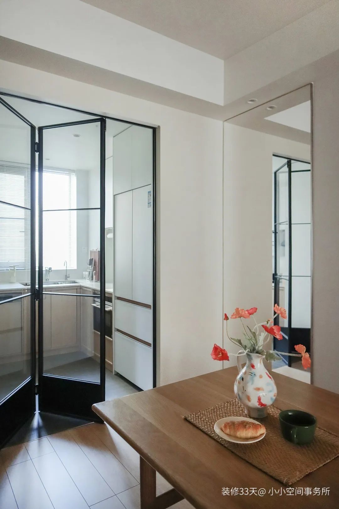 ▲ 本来厚重的推拉门改为轻盈通透的金属折叠门,翻开时不占空间,也让餐厨之间的连接更为严密